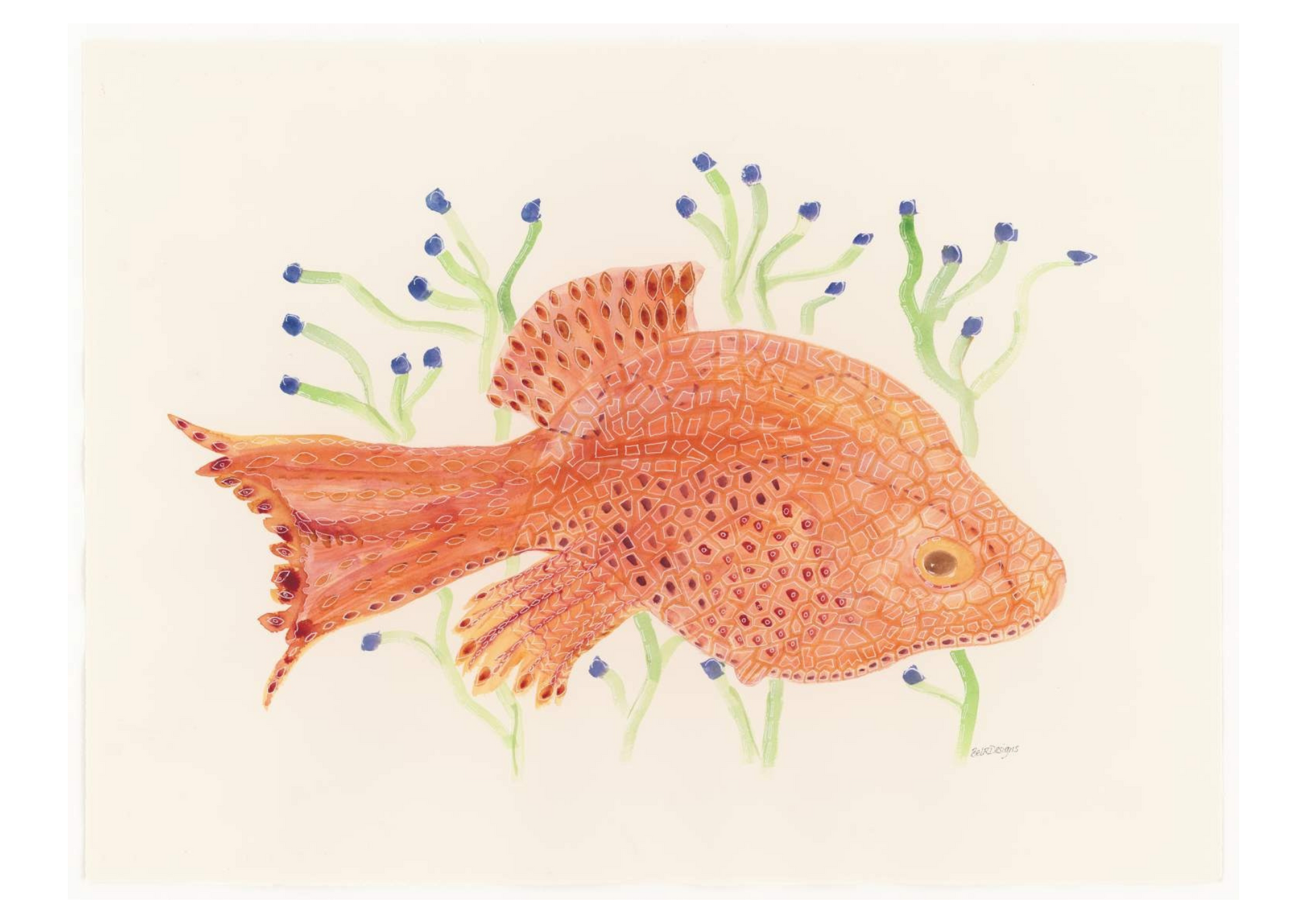 This detailed watercolour painting on 365gsm archival paper captures the vibrant essence of an orange fish with scales rendered to show texture and movement, in an underwater scene. The overall composition feels both dynamic and peaceful.